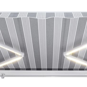 These awnings come with built-in LED lights on the underside of the arms that will illuminate your outdoor living space. With three lighting settings you can control how much light you need for any occasion. Control your awning easily and remotely with Smart Home Integration. A wind sensor will give peace of mind and longevity to your awning by automatically retracting during high winds.